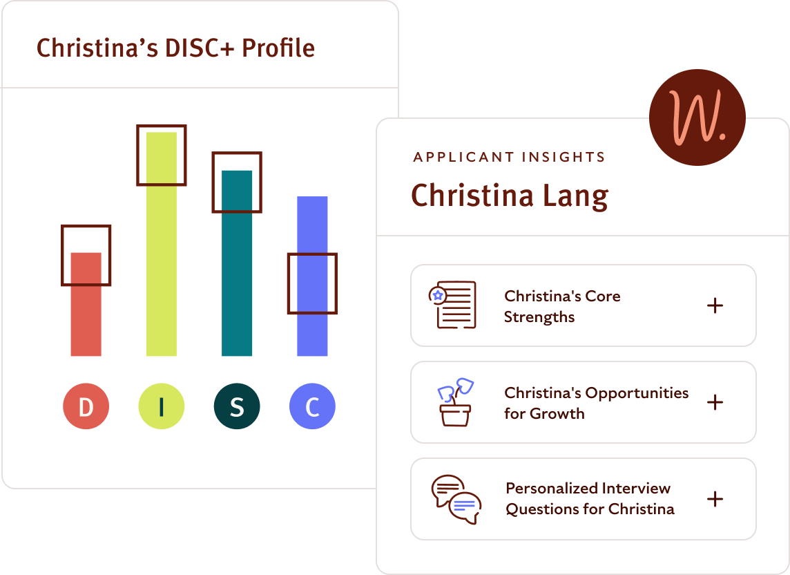 View detailed screening results, including skills assessments and DISC+ personality insights, to determine the best fit for your team.